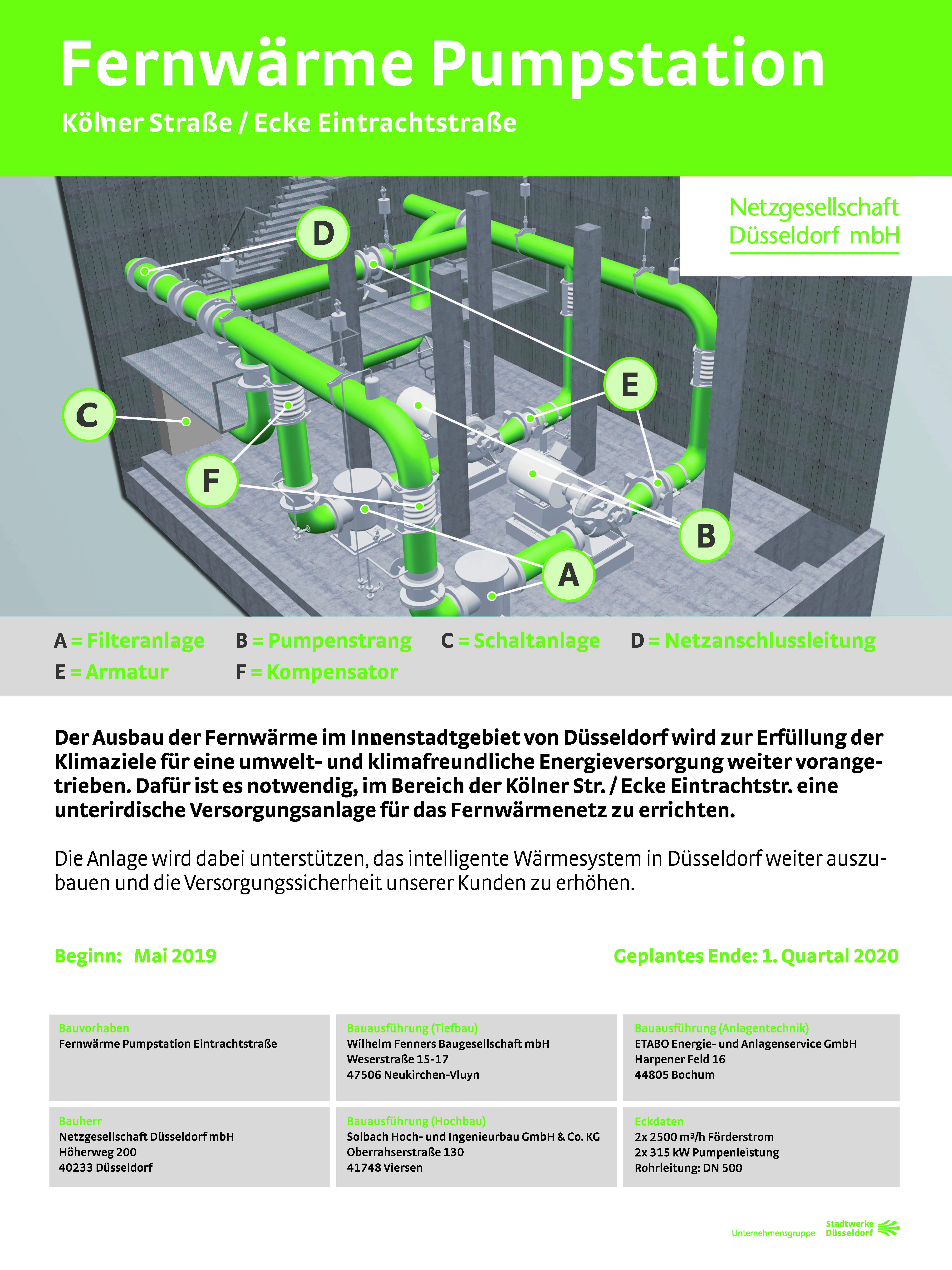 New construction of district heating pump station Düsseldorf