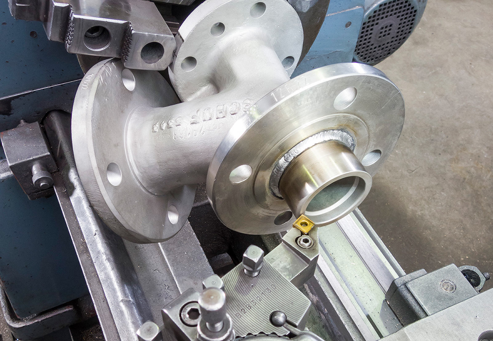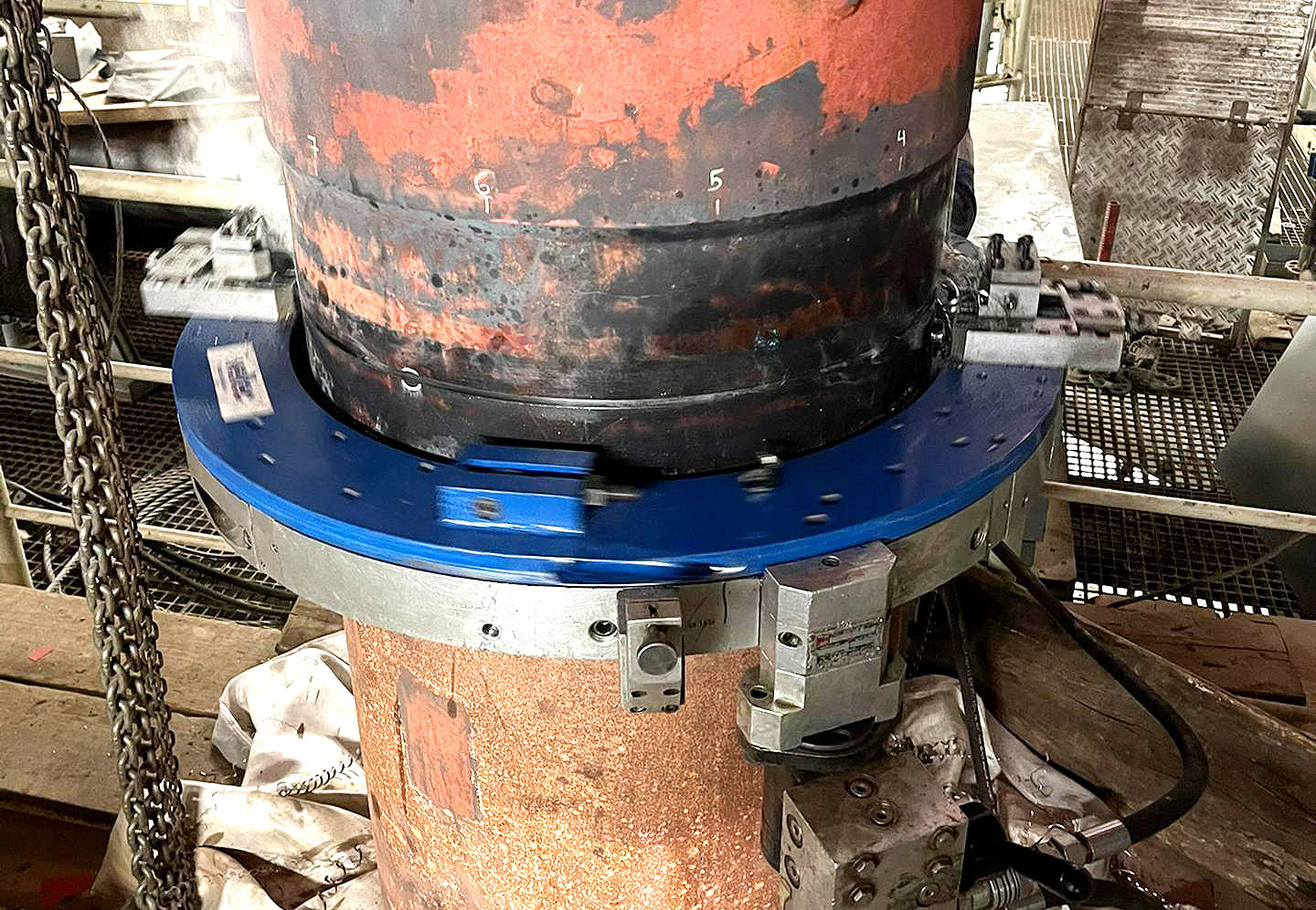Adaptable to any given diameter Flange facing Turning of RTJ joints Range: Dia. till min. 6 m Flatness tolerance: 0,25 mm ( dia. 6m )