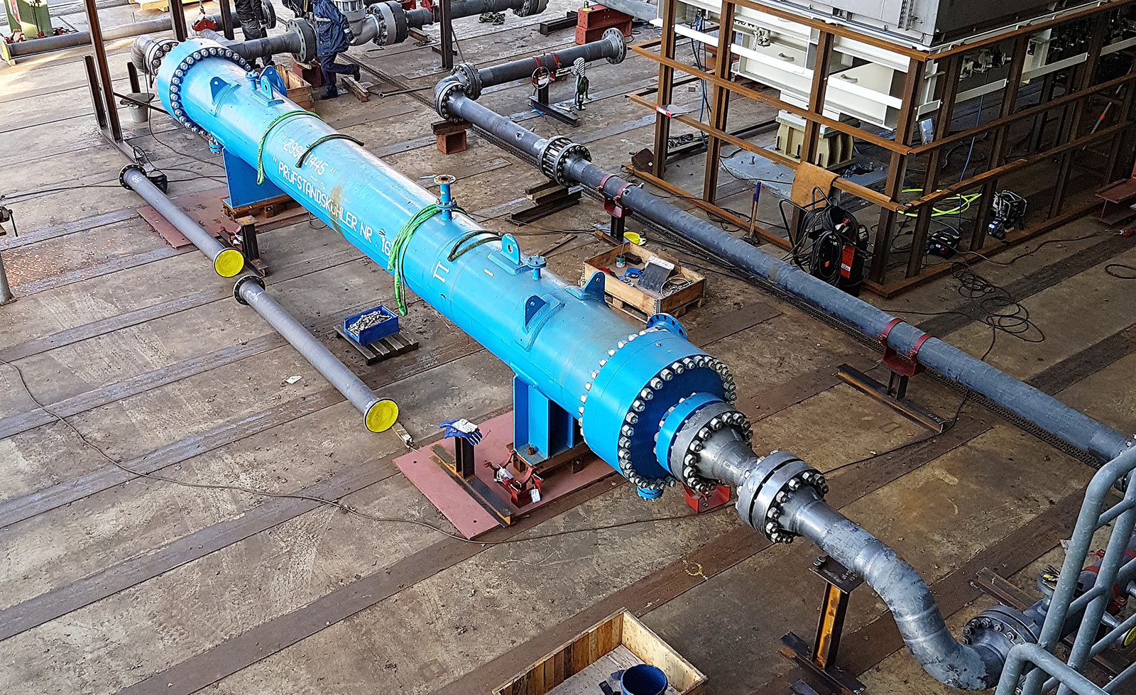 Piping of a compressor train consisting of a gas turbine and a compressor for testing on an open-air test bench. 3,750 hours September 2017 - March 2018